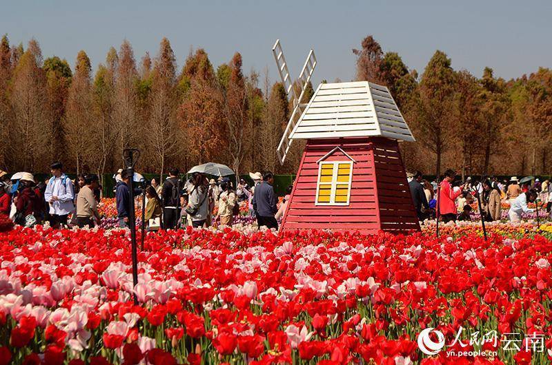 昆明捞鱼河湿地公园内盛开的郁金香(资料图)。人民网记者 刘怡摄