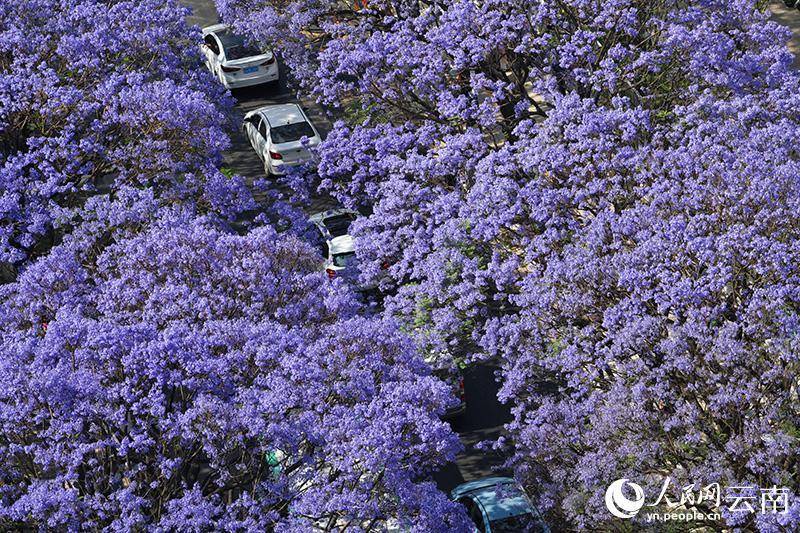 昆明市五华区教场路浪漫绽放的蓝花楹。杨武摄