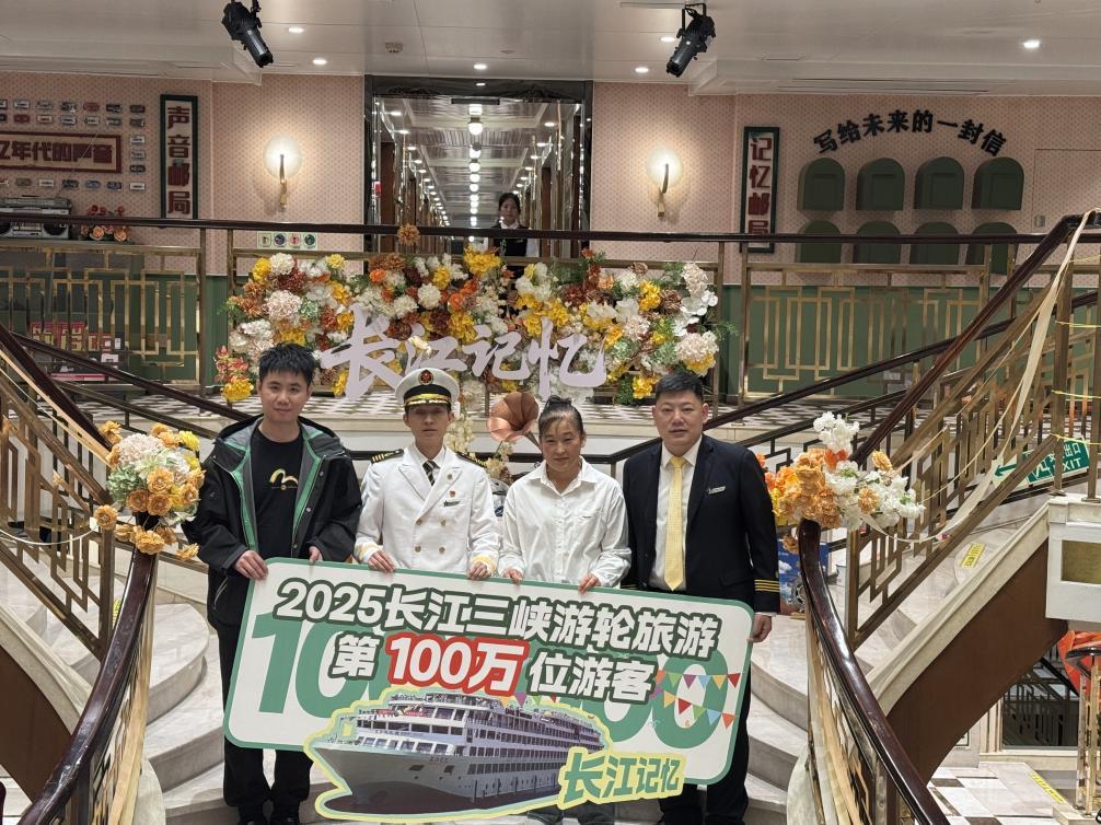 登船当晚,在重庆邮轮中心工作人员的见证下,来自辽宁省鞍山市的王女士幸运地成为了三峡航线2025年度的第100万位游客,为纪念这一里程碑式的时刻,一场以“百万相逢,三峡有礼”为主题的专属纪念仪式在游轮内温情上演,旨在致敬每一位选择三峡、热爱三峡的游客。